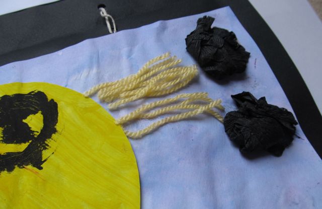13. Incolla dei fili di lana gialla per creare le antenne.