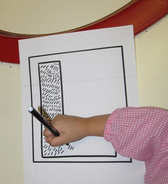 Osservazioni: questa attività ha permesso ai bambini di imparare/consolidare il grafema della lettera L e di prendere maggiore consapevolezza del suo fonema. Hanno inoltre esercitato la loro motricità fine e la coordinazione oculo-manuale sia nella prescrittura della lettera, sia nel disegnare i trattini al suo interno.