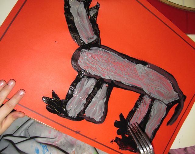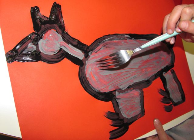 4. Passa una forchetta sul colore ancora fresco realizzando una texture simile al pelo.