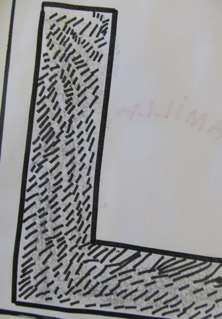 7. Riempie la L di trattini utilizzando un pennarello a punta fine nero.