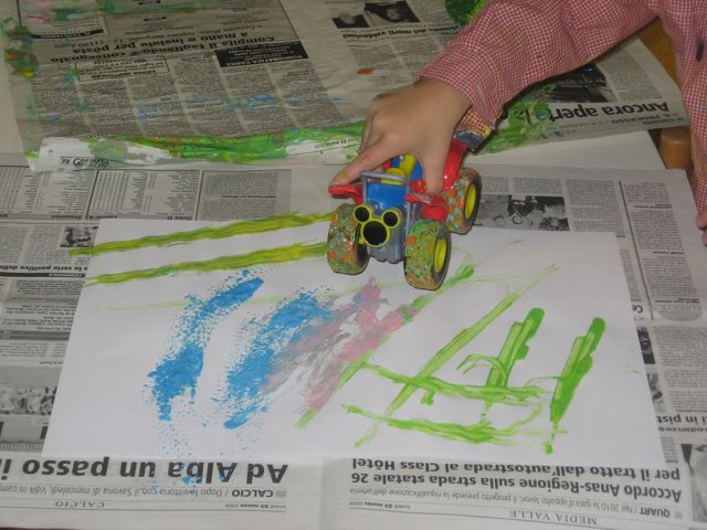 3. Ho invitato i bambini a muovere liberamente le macchinine sul foglio (tracciando dei percorsi).