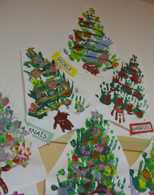 En suivant les instructions les enfants ont réaliser des beaux sapins: