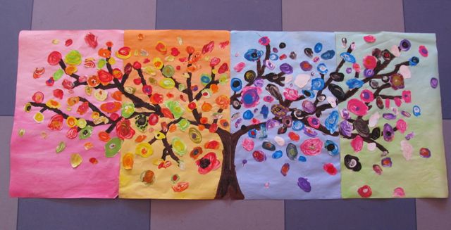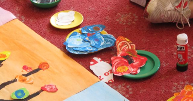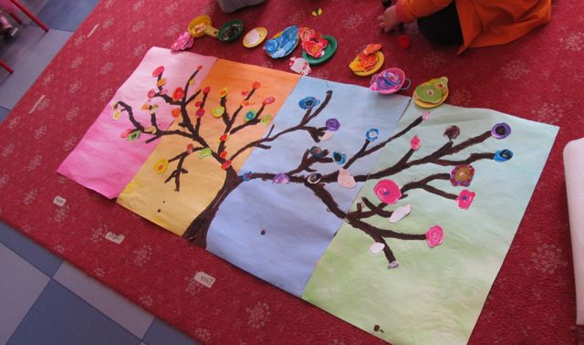 9. Les enfants complètent l’arbre en collant les fleurs sur ses branches.