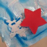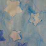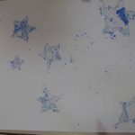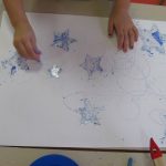 2. L’enfant colle les étoiles sur un papier blanc aux endroits qu’il préfère.
