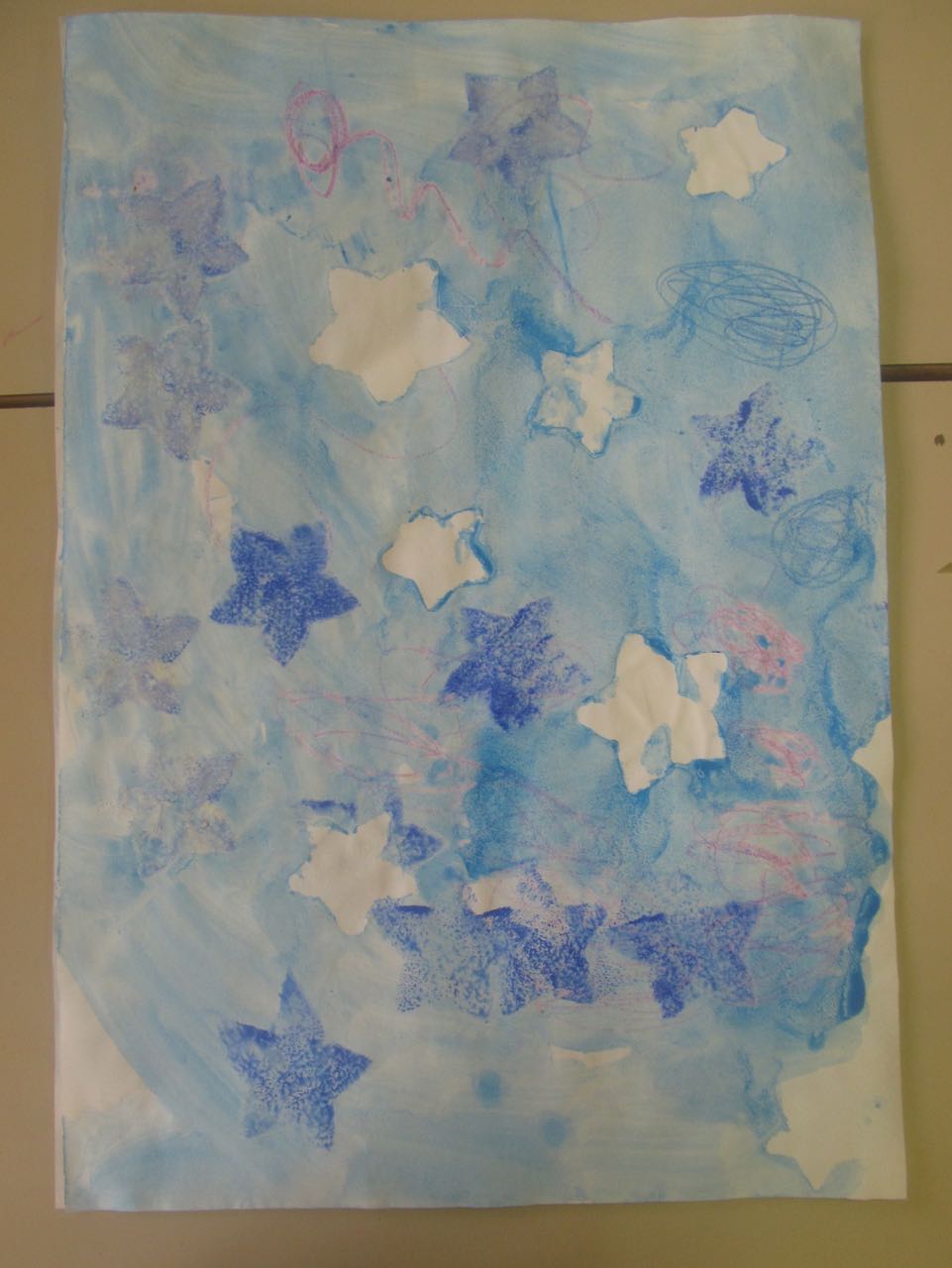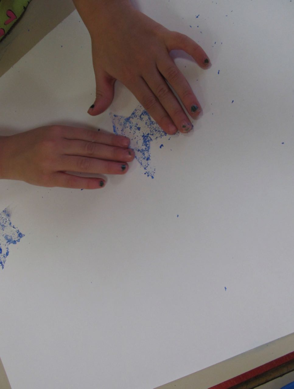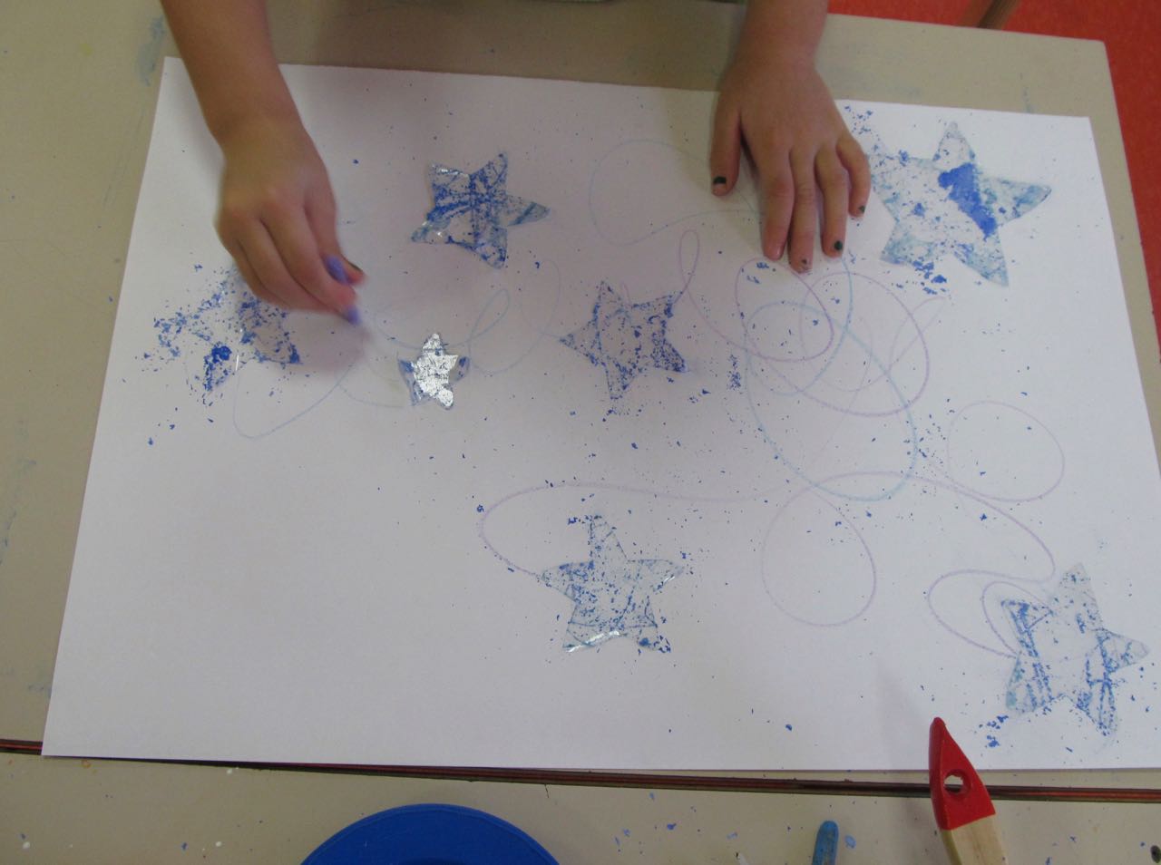 2. L’enfant colle les étoiles sur un papier blanc aux endroits qu’il préfère.