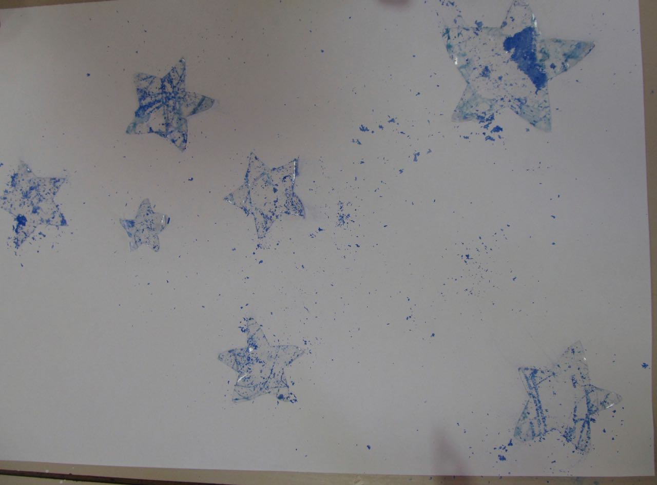 1. L’enseignant réalise des étoiles dans du papier adhésif.