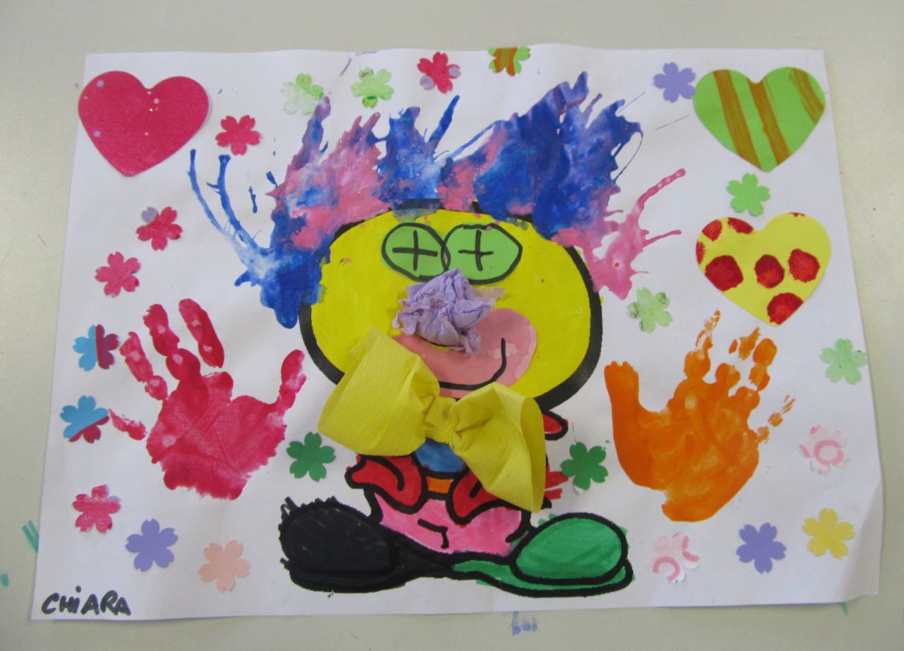 10. L’enfant choisit la couleur du papillon du clown, l’enseignant le réalise en papier crépon.