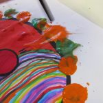 6. L’enfant, à l’aide d’une paille, souffle sur la peinture pour réaliser une folle chevelure.