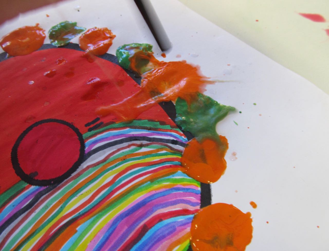 6. L’enfant, à l’aide d’une paille, souffle sur la peinture pour réaliser une folle chevelure.