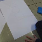 2. L’enfant observe très bien le bonhomme et cherche à le reproduire sur son papier A3.