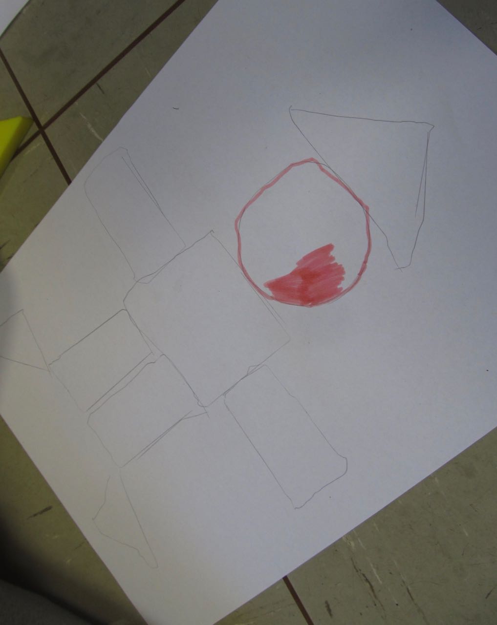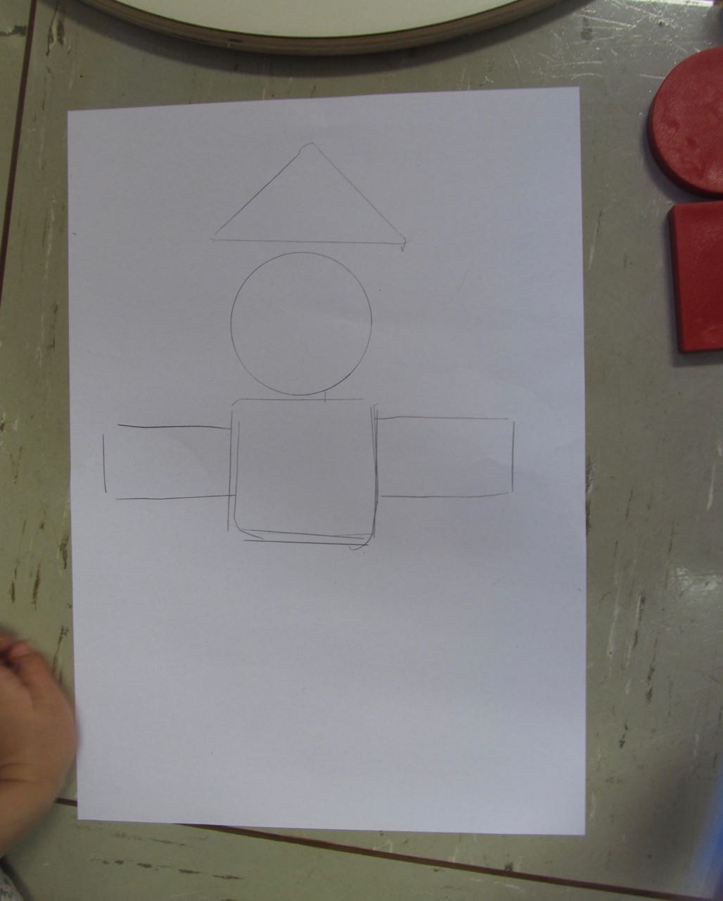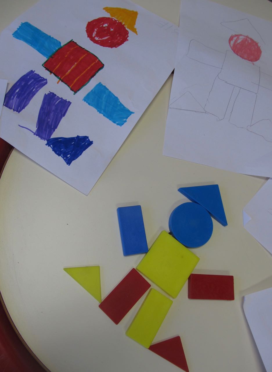 Observation: L’activité m’a permis de travailler sur la nomenclature des formes en langue française et de développer la logique et l’observation de l’enfant. En effet il a dû situer des objets dans l’espace et faire attention aux différentes grandeurs. En outre il s’est entraîné à dessiner des formes planes et donc à bien mémoriser leurs caractéristiques.