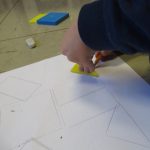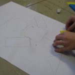 4. Le jour suivant, c’est l’enfant qui dessine ce qu’il préféré (un paysage, des objets, une dame…) toujours en retraçant les contours des blocs logiques à l’aide d’un crayon.