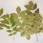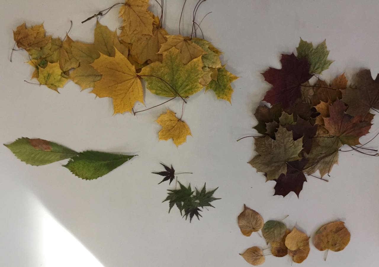 6. Les enfants cueillent des feuilles différentes. Ils mettent les feuilles entre deux pages de journal et ils les placent sous presse (sous de gros livres). Ils attendent plusieurs jours que les feuilles soient déshydratées.