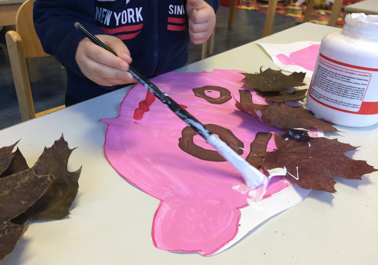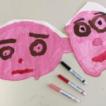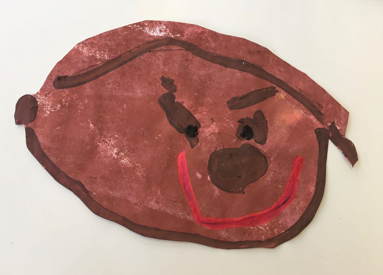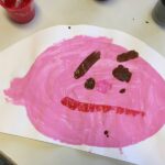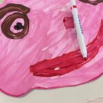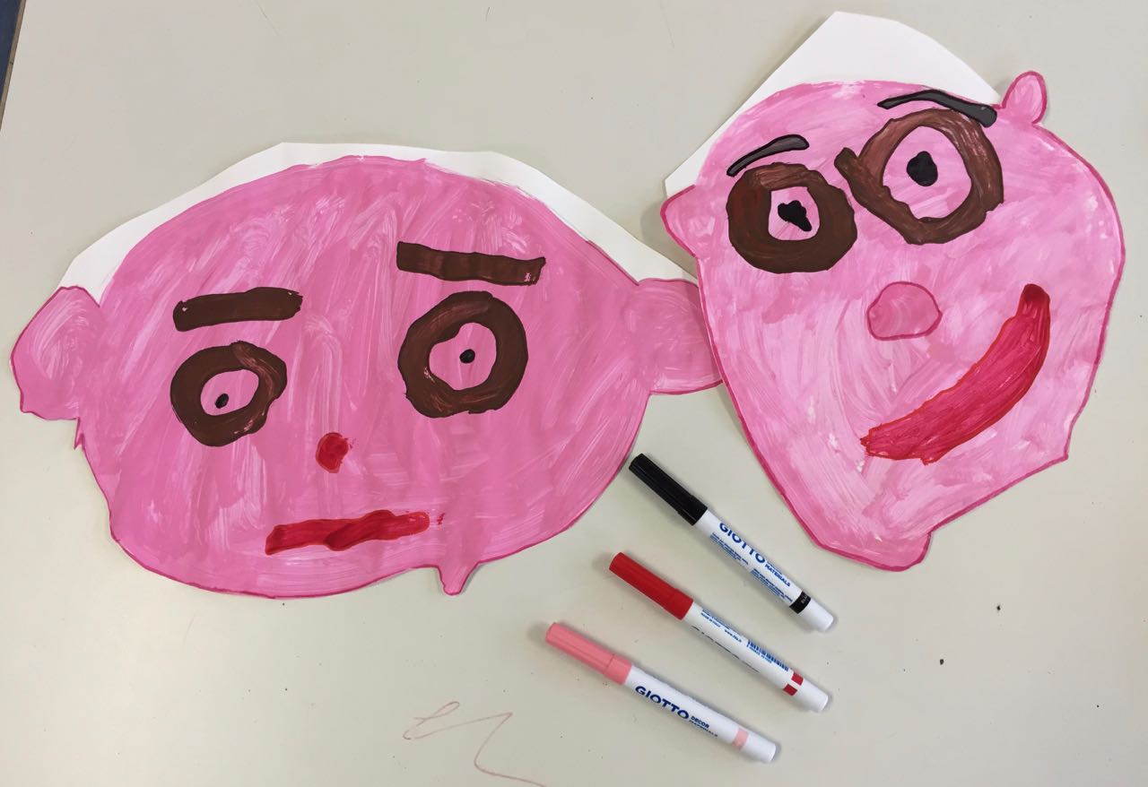 1. Les enfants peignent, avec de la gouache rose ou marron, leur visage sur un papier A3.