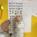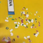 3. L’insegnante ritaglia tutte le lettere di tutti i bambini di 4 anni e le mette sul tavolo.