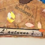 5. Incolla la frase “…tra le foglie d’autunno, ho trovato l’iniziale del mio nome…” dopo averne colorato lo sfondo con la matita colorata marrone e ripassato il contorno con un pennarello nero.