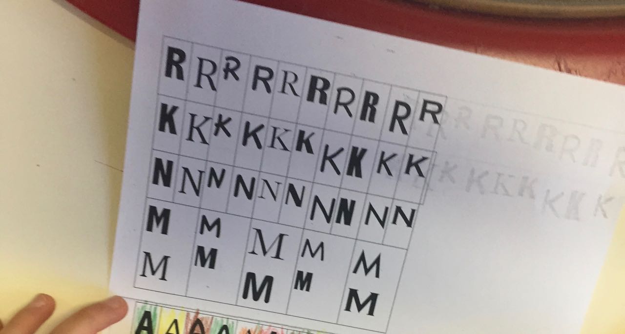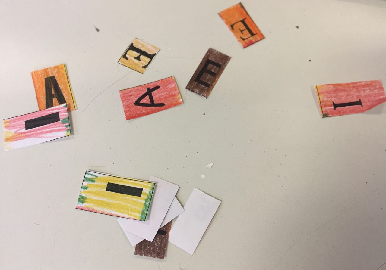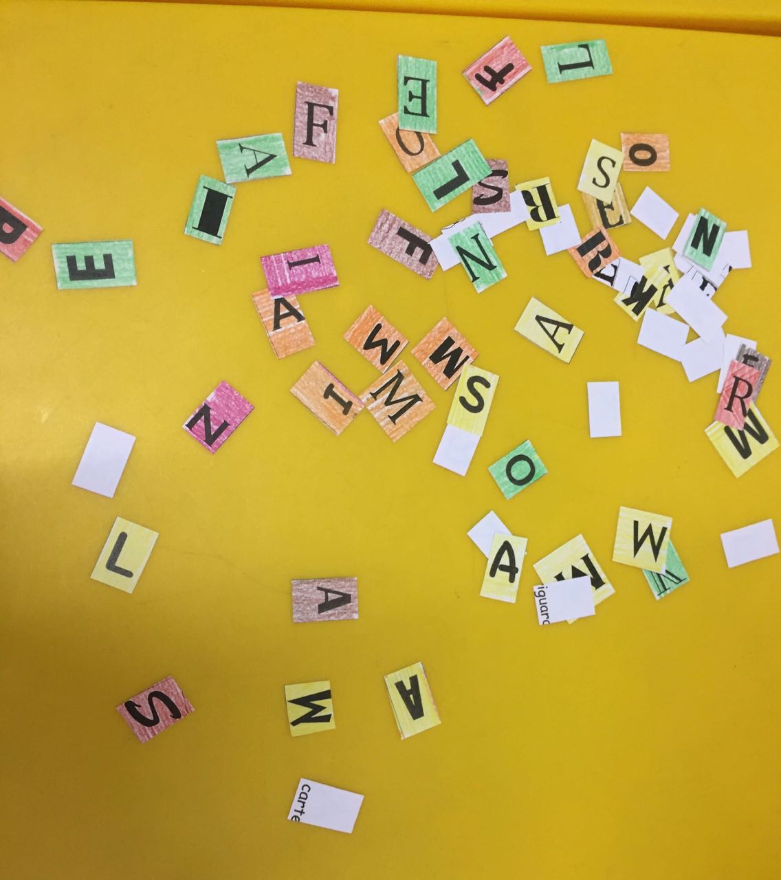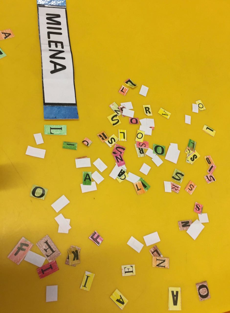3. L’insegnante ritaglia tutte le lettere di tutti i bambini di 4 anni e le mette sul tavolo.