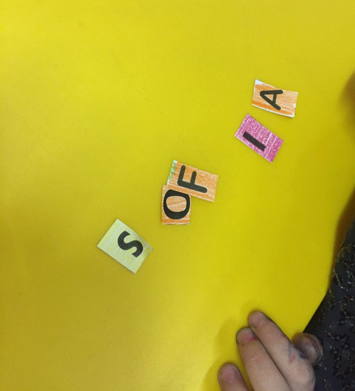 4. Ogni bambino prende le lettere del suo nome e ricompone il suo nome sul tavolino.