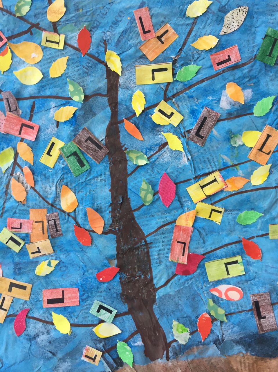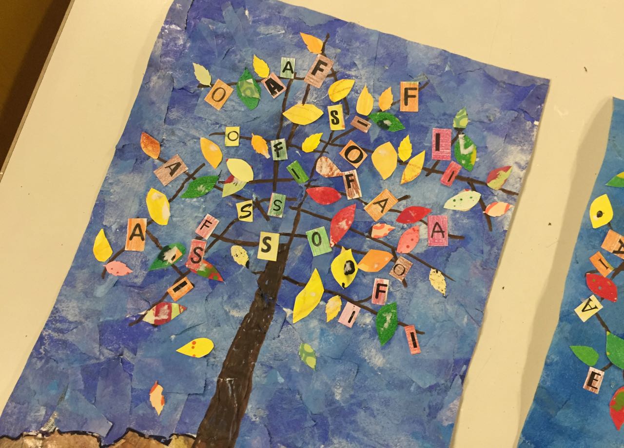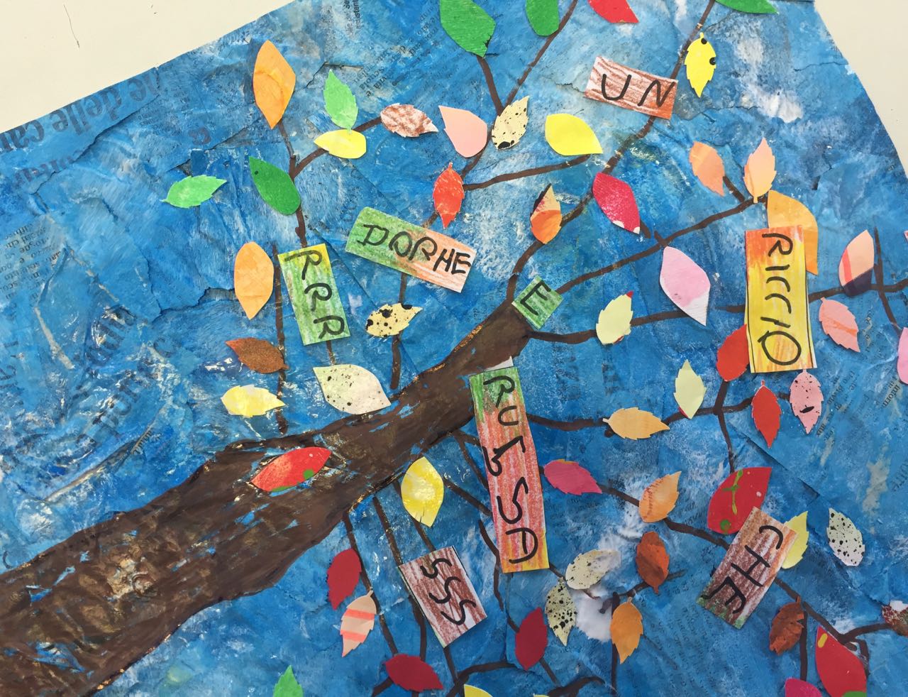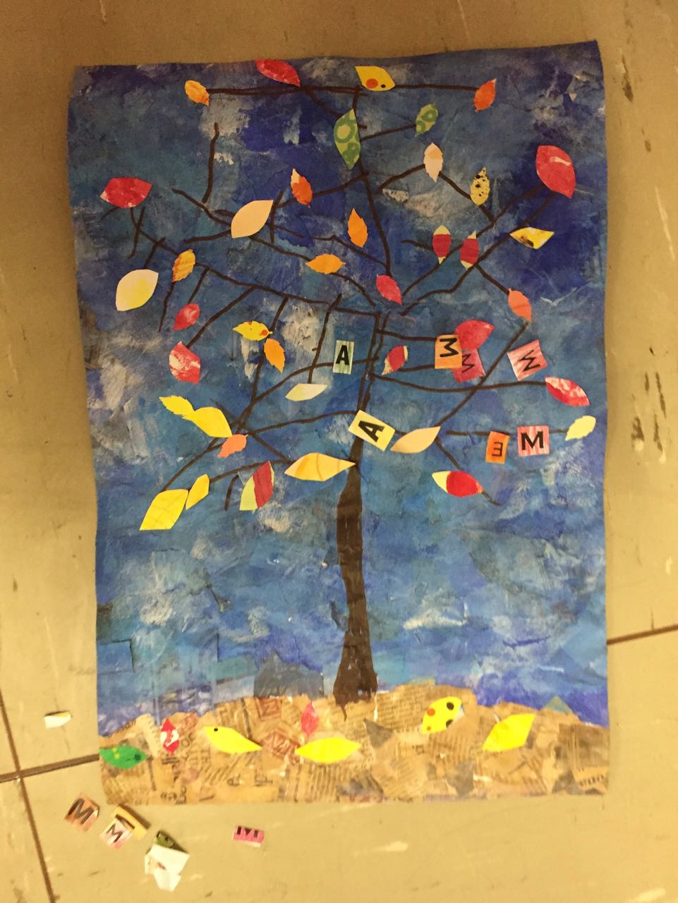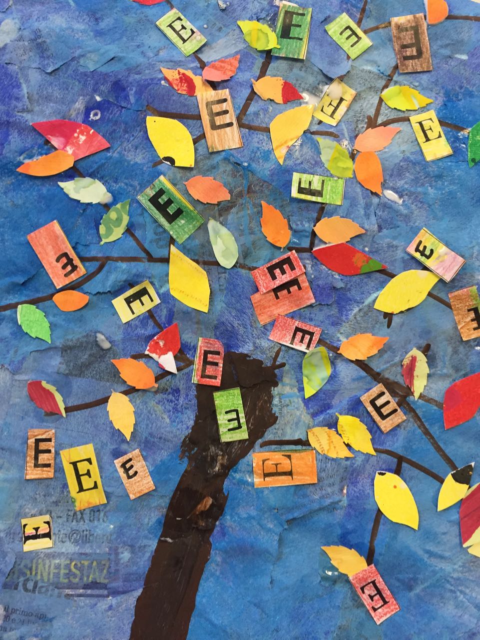 5. Incolla quindi le lettere del proprio nome sull’albero.