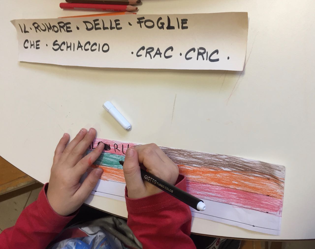 I bambini di 5 anni si sono esercitati nella motricità fine e nella coordinazione oculo-manuale ricopiando le diverse parole che andavano a comporre il loro pensiero sull’autunno.