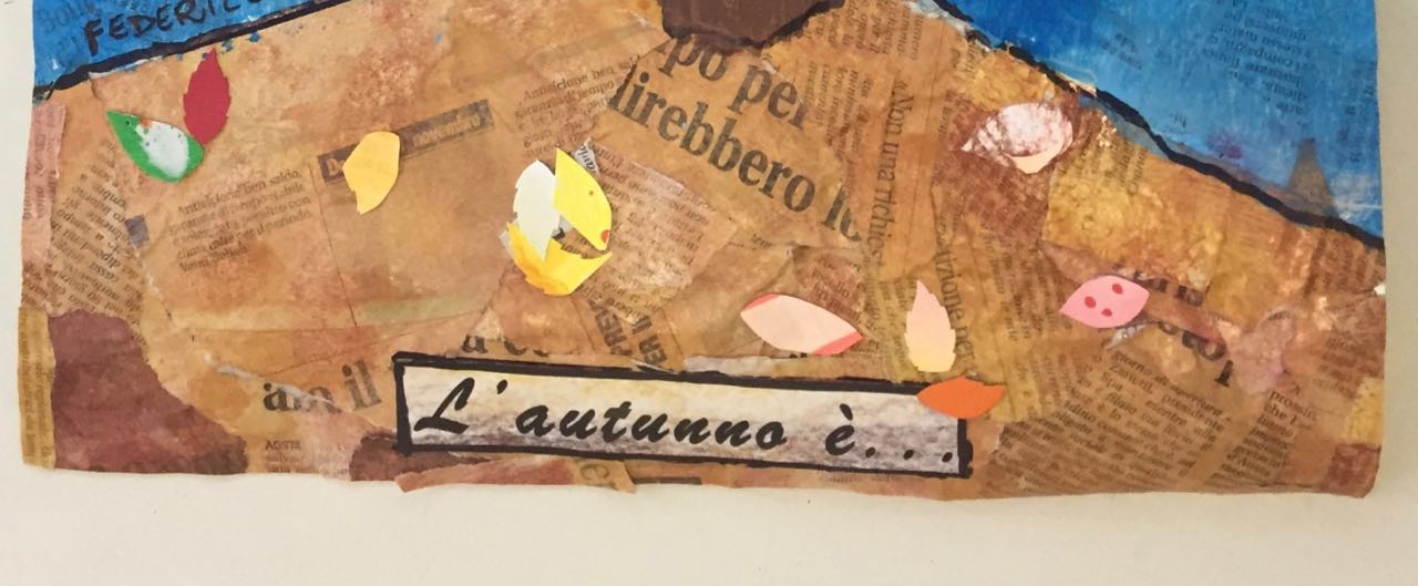 5. L’insegnante incolla un’etichetta con la scritta “L’autunno è…” dopo averne colorato lo sfondo con la matita colorata marrone e ripassato il contorno con un pennarello nero.
