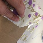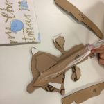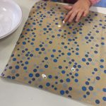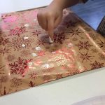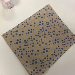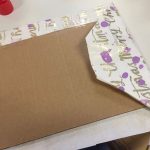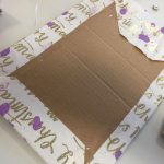 3. L’insegnante incolla la carta da pacco sul rettangolo di cartone spesso, lasciando tutto intorno un bordo di circa 4/5cm.