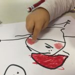 9. L’insegnante invita il bambino a colorare alcuni dettagli del suo disegno con un unico colore. (es. rosso il cappello di Babbo Natale, azzurro il bordo delle nuvole…)