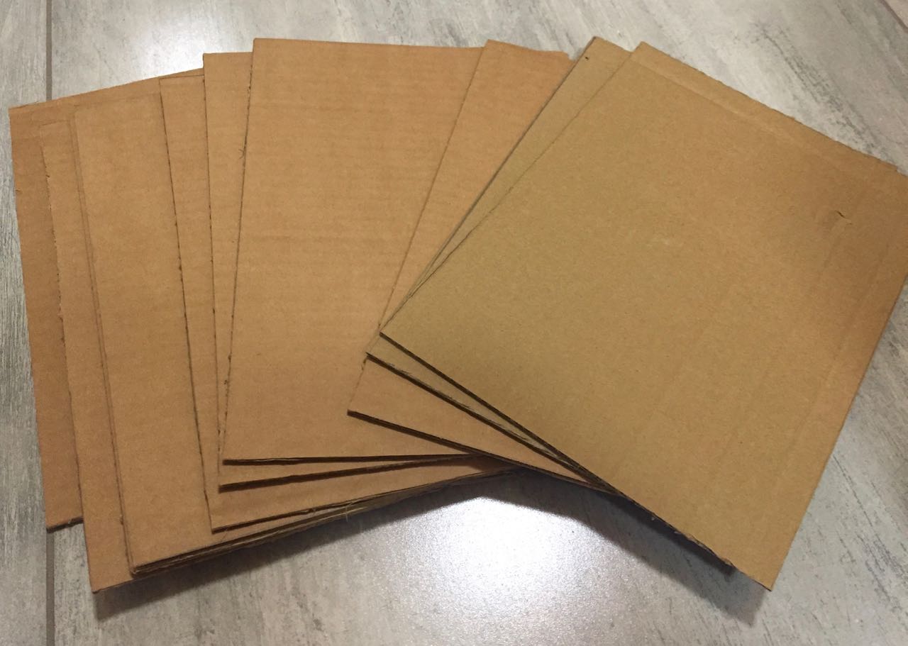 1. L’insegnante ritaglia dei rettangoli (24 cm. circa x 31 cm) di cartone spesso, ( per intenderci quello degli scatoloni di imballaggio).