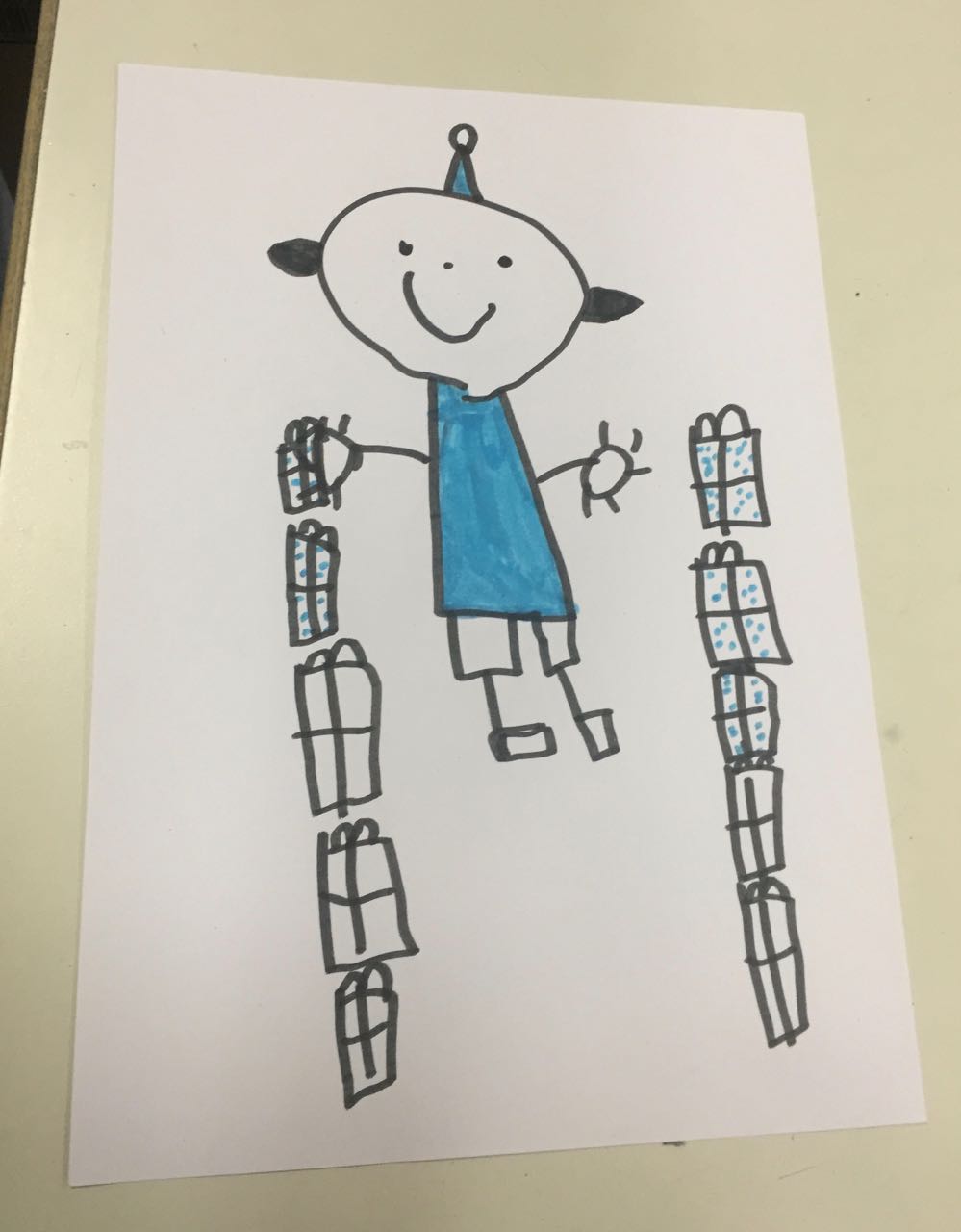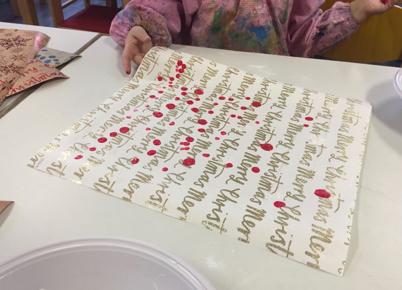 P.S. in realtà avevo iniziato a far disegnare ai bambin stessi la carta da pacco,m ail lavoro era tropo lungo.