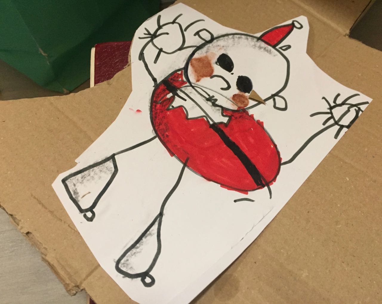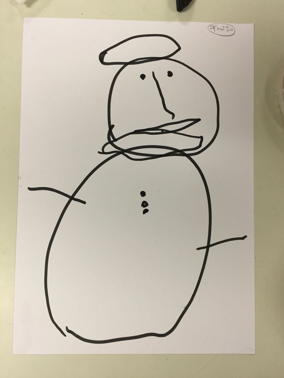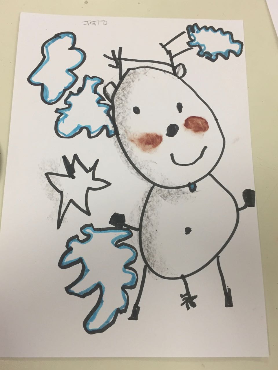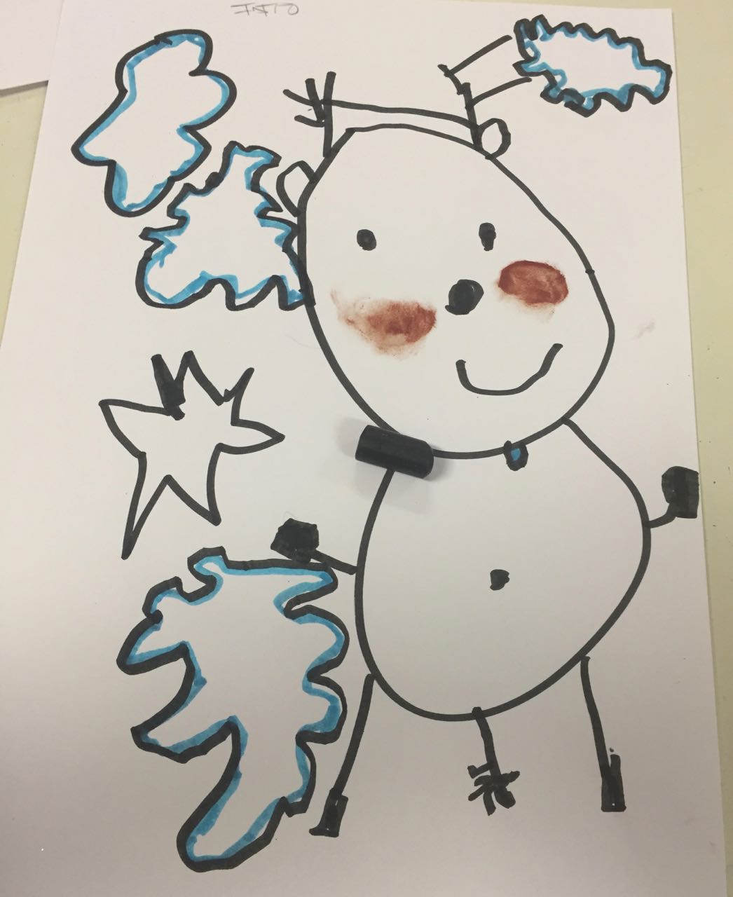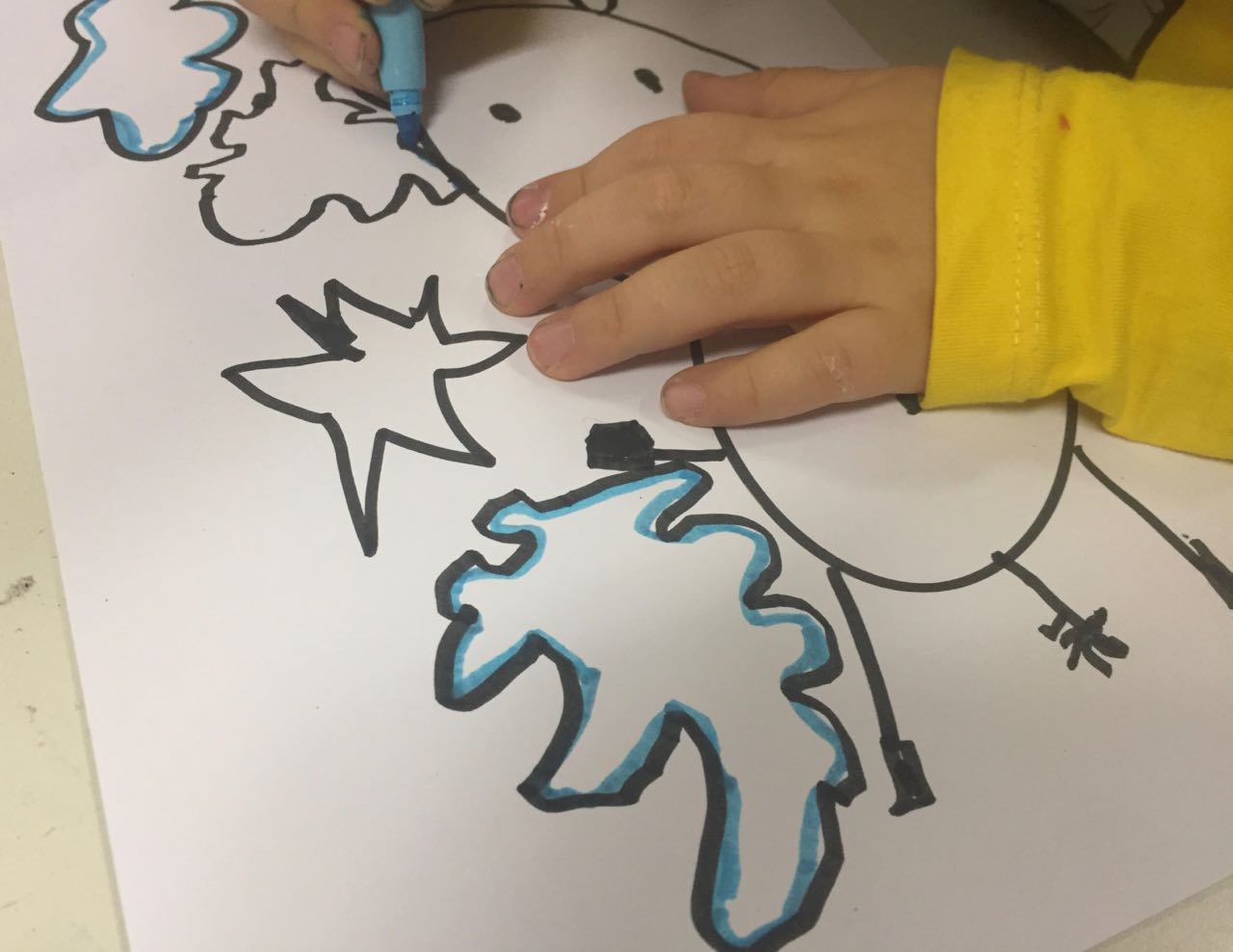 8. Il bambino disegna, su dei cartoncini bianchi e usando solo un pennarello nero, un soggetto natalizio a suo piacimento.