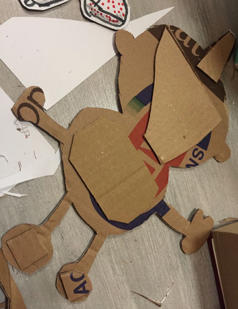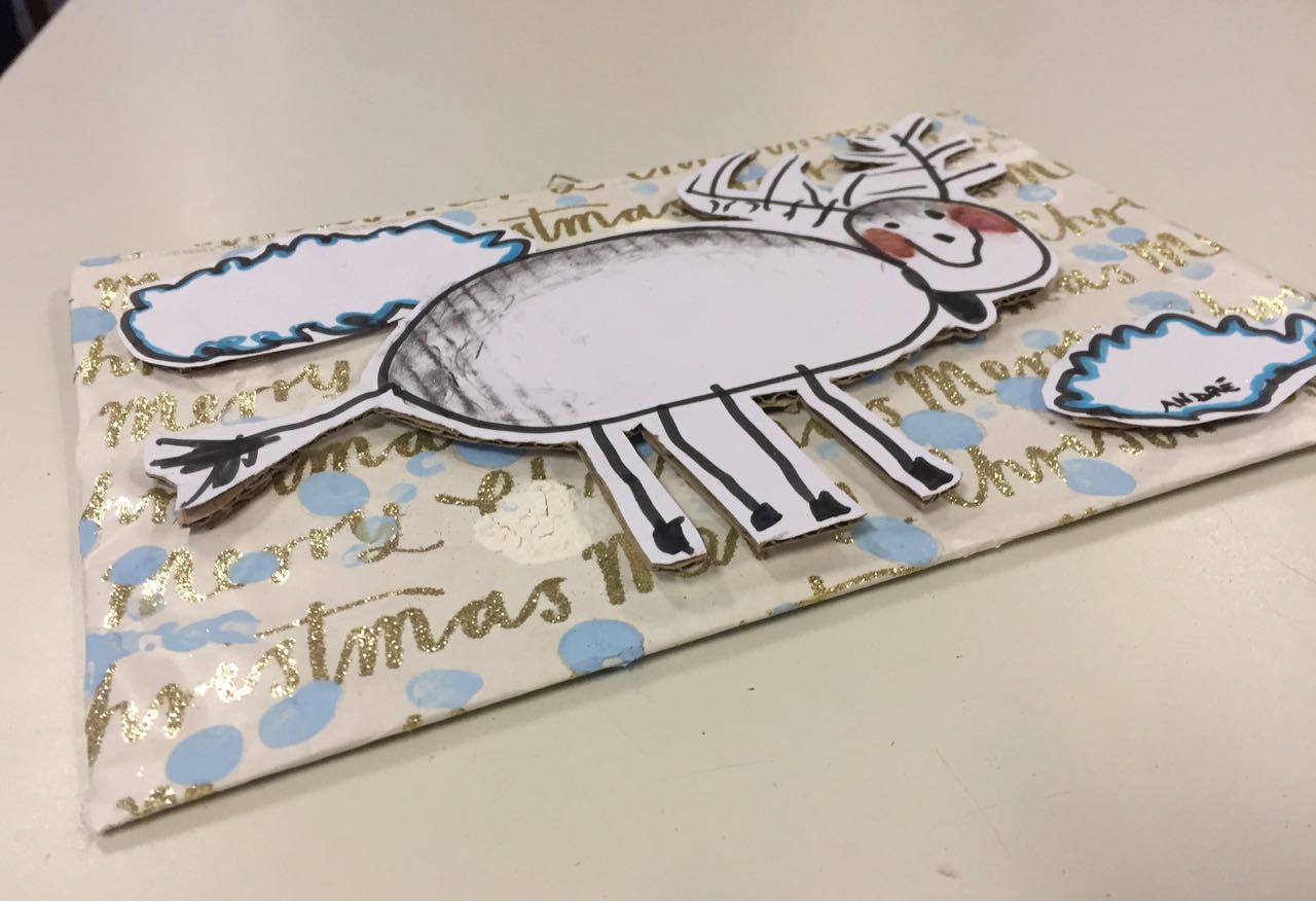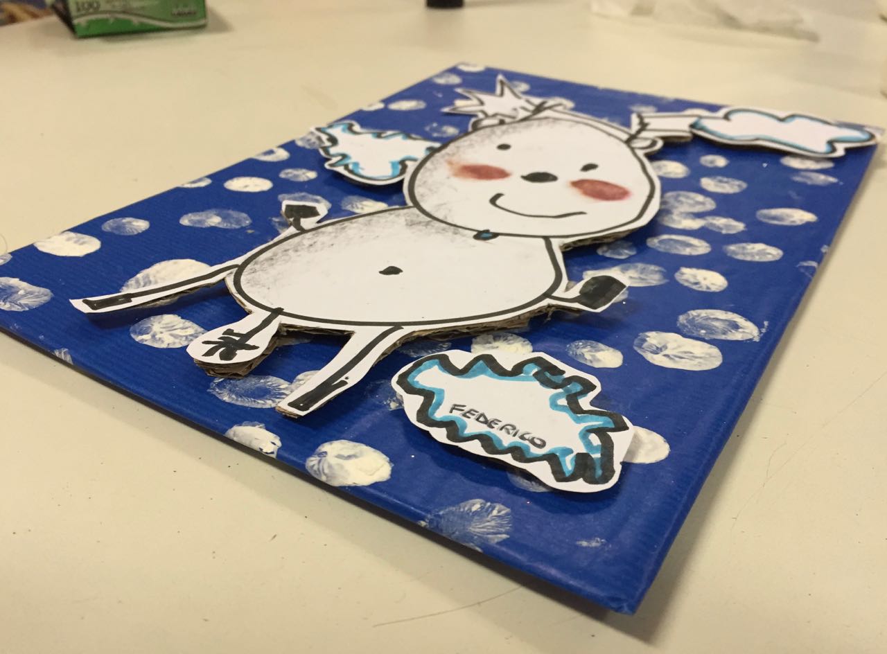 14. Sul retro dei soggetti principali (es. Babbo Natale, renna..) incolla ancora dei ritagli di cartone spesso in modo da creare maggiore spessore.
