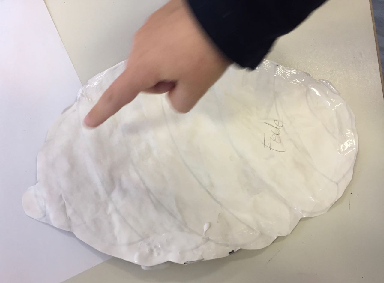 4. L’enseignant trace les contours du cocon avec un marqueur noir.