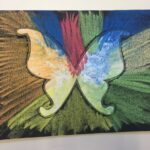 Attention: avant de détacher le papillon j’ai fixé la craie en vaporisant sur le papier de la laque pour cheveux.